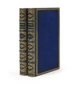 MONTESQUIEU, Charles Louis de Secondat, Baron de La Brède et de. Lettres persanes. — Amsterdam, chez Pierre Brunel, 1721. — 2 volumes in-12 (161 x 95 mm) de [1] f., 311 pp. ; [1] f., 347 pp. — Maroquin bleu, triple filet doré en encadrement...