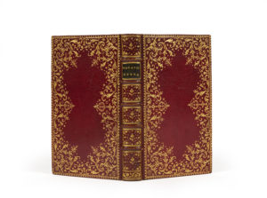 vert sombre, filet doré sur les coupes, roulette intérieure dorée, tranches dorées (reliure de l’époque).