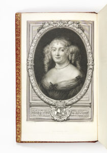 → Impressionnant exemplaire, luxueusement établi à l’époque par Chambolle-Duru, en maroquin portant sur les plats les armes dorées et mosaïquées de la marquise de Sévigné. Il a été relié en 14 volumes et les planches (portraits, vues, armes, fac-similés d’autographes) qui sont souvent reliées en un volume à part formant l’atlas ont, compte tenu du format de cet exemplaire en grand papier, pu être reliées au sein des volumes.