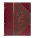 Petits frottements aux coupes, marques de pliure centrale, certains ff. empoussiérés, quelques indications typographiques, ancienne découpe soigneusement restaurée à un feuillet, petites mouillures aux gardes et à l’intérieur de l’étui, petite déchirure à la garde en fin de volume.