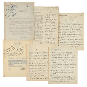 – 1 lettre dactylographiée signée de René Pagnol à Marcel Pagnol, du 16 janvier 1935, avec réponse manuscrite signée de Marcel Pagnol. Il détaille l’avancée des films Cigalon et Merlusse.