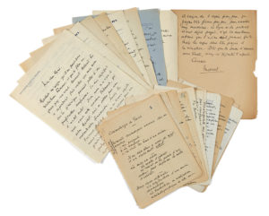 – 3 fragments autographes de Marcel Pagnol sur le roman, l’auteur et le cinéma : « L’écrivain, lui, ne s’adresse pas au spectateur, mais au lecteur : espèce tout à fait différente ! ».