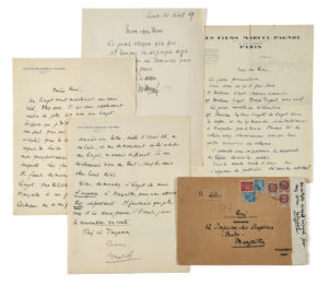 PAGNOL (Marcel) — Ensemble de trois lettres ou fragments autographes à René Pagnol.