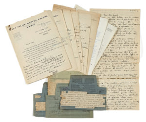 – 1 lettre dactylographiée signée de René Pagnol à Marcel Pagnol, du 7 décembre 1934, avec réponse manuscrite signée de Marcel Pagnol. Sont jointes deux lettres annotées par Marcel Pagnol. Le cinéaste fait part à son frère d’une urgence : « Toutes affaires cessantes, précipite toi chez Kitty [Murphy, danseuse anglaise rencontrée en 1930 avec qui Marcel aura un fils, Jacques Pagnol], et dégotte le manuscrit de Pirouettes [roman de Marcel Pagnol paru en 1932]. »