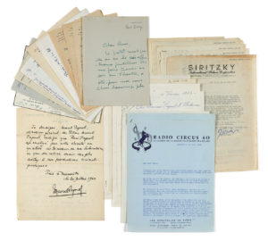 – 14 lettres à René Pagnol de divers expéditeurs, dont 3 LAS de l’écrivain Maurice Bastide, 1 LAS du réalisateur Alexander Esway et 1 LAS du dessinateur Toé.