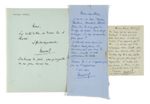 PAGNOL (Marcel) — Ensemble de 3 lettres autographes signées à René Pagnol.
