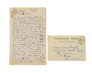 Une carte autographe signée d’André Salmon à Maurice Raynal. 23 novembre [1914].