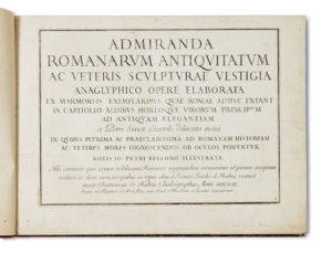 BARTOLI (Pietro Santi) — Admiranda Romanarum antiquitatum ac veteris sculpturae vestigia anaglyphico opere elaborata […]. — Rome, Giovanni Jacopo de Rubeis, 1693. — In-folio oblong (37 x 48,5 cm), demi-basane rouge, dos lisse avec titre doré...