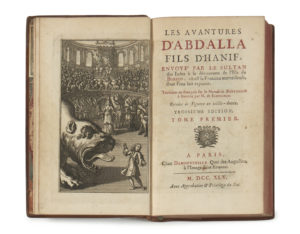 BIGNON (Jean-Paul, abbé)] — Les Avantures d’Abdalla fils d’Hanif, envoyé par le sultan des Indes à la découverte de l’Isle de Borico […]. — Paris, Damonneville, 1745. — 2 tomes en 1 volume petit in-8 (16,7 x 9,6 cm), veau marbré,...