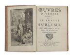 BOILEAU-DESPRÉAUX (Nicolas) — Œuvres diverses du Sieur D*** avec le traité du sublime ou du merveilleux dans le discours. — Paris, Denys Thierry, 1674. — 2 parties en 1 volume in-4 (24 x 16,6 cm), maroquin rouge, triple filet doré en...