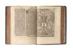 ILLUSTRÉE DE 2 GRANDES FIGURES GRAVÉES SUR BOIS, D’UNE GÉNÉALOGIE, D’UN DIAGRAMME, DE 2 MARQUES D’IMPRIMEUR ET DE NOMBREUSES LETTRINES GRAVÉES SUR BOIS.
