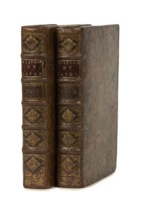 Coins émoussés, des petits frottements sur les dos, petite restauration à la coiffe de tête du t. I, coiffe supérieure du t. II arasée, petites épidermures sur les plats, mors inférieur fendu au t. II, légère mouillure en tête du 3e feuillet du t. II, infimes rousseurs éparses, quelques feuillets brunis.