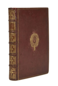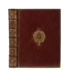 plats, dos à nerfs orné de fleurs de lis dorées avec pièce de titre vieux rouge, dentelle intérieure dorée, tranches dorées (reliure de l’époque).