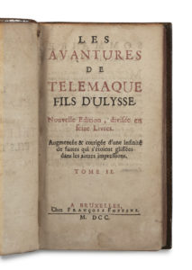 Édition de l’ouvrage le plus célèbre de Fénelon, parue un an après l’originale. Le tome II comprend les Avantures d’Aristonoüs.