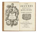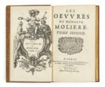 Néanmoins, « l’édition de 1666 est considérée à juste titre comme la première édition collective des œuvres de Molière » (Guibert). Il souligne par ailleurs qu’elle est « très rare ». Plus rare encore, notre exemplaire regroupe ici deux tomes publiés par le même libraire.