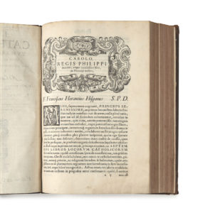 ORANTES Y VILLENA (Francisco) — Locorum catholicorum tum sacrae scripturae, tum etiam antiquorum patrum, pro orthodoxia […] libri septem […]. — Venise, Giordano Zileti, 1564. — Petit in-folio (28,9 x 19,3 cm), veau brun, filet à froid en...