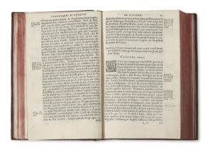 (22,1 x 13,3 cm), veau brun, dos à nerfs orné, pièce de titre brune (reliure du XVIIe siècle).
