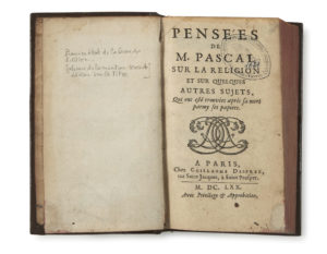 PASCAL (Blaise) — Pensées […] sur la religion et sur quelques autres sujets, qui ont esté trouvées après sa mort parmy ses papiers.
