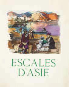 Farrere Claude et Fouqueray Charles. Escales d’Asie. Paris, Laborey, 1947, in-4 en feuilles sous couverture rempliée, illustrée en couleurs, dans son emboitage, 135 pages illustrées d’une carte et de 45 aquarelles de Charles Fouqueray. Tiré à
