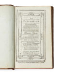 [RÉTIF DE LA BRETONNE (Nicolas-Edme)] — La Prévention Nationale. — La Haye, puis Genève, [s. n.], 1784. — 3 vol. in-12 (16,5 x 9,7 cm), demi-basane brune, dos lisses ornés de filets dorés (reliure du temps).