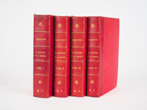 Les fragiles couvertures ont été conservées. (Manque le vol. V Vida de Miguel de Cervantes par D. Martin Fernandez de Navarrete. Edition illustrée de 20 figures hors-texte gravées par J. Rivelles et d'une carte