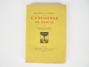 BARRES (Maurice). L'Angoisse de Pascal. Edition suivie d'une étude sur les deux maisons de Pascal à Clermont-Ferrand. Portrait de Pascal gravé sur bois. Paris, Crès 1918 in-16, br. _x000D_ Ex. num sur Rives