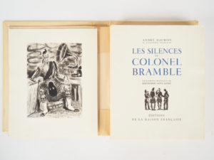 MAUROIS (André). Les silences du Colonel Bramble. Eaux-fortes originales de BERTHOMME SAINT-ANDRE. Paris, Editions de la Maison française 1949. in-4 en ff. Chemise et étui cartonné_x000D_ Tirage : 800 ex. sur pur chiffon Corvol