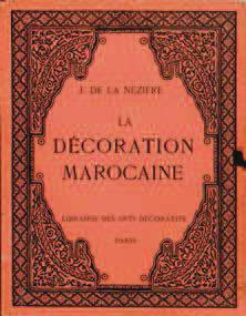 La Neziere (J. de) La Décoration Marocaine. Paris, Calavas, sd (1927), in folio, en feuilles sous cartonnage à lacets, au premier plat illustré. 55 planches dont certaines en couleurs, accompagnées d’une préface et d’une table descriptive. Deux