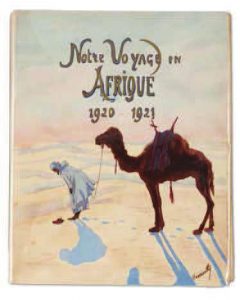Vendôme Duchesse Henriette de. Notre Voyage en Afrique. 1920-1921. Paris, Gazette des Beaux-Arts, 1928, 4 volumes in-8 en feuilles sous couvertures illustrées rempliées, autographiés et illustrés de lithographies en couleurs ou sur fond teinté.