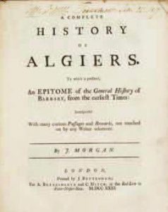 Morgan Joseph. Acomplete history of Algiers. To which is prexed, An epitome of the general history of Barbary, from the earliest times: interspersed with many curious passages and remarks, not touched on by any writer whatever. London, Bettesworth and