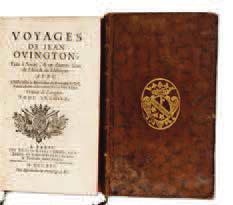 reliés plein veau époque aux armes des Riquet de Caraman, dos à nerfs ornés de eurons héraldiques, armes sur les plats, tranches rouges, les deux pièces de titre du tome 1 manquent. Xxiv + 324 + Vi + 318 pages. C’est en prison, à Surate, qu’Ovington étudia les moeurs du Mogol.