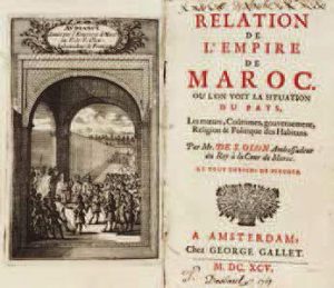 Saint-Olon de. Relation de l’Empire de Maroc où l’on voit la situation du pays, les mœurs, coutumes, gouvernement, religion et poli-tique des habitans. aamsterdam, chez Gallet, 1695, in-12 relié plein veau, dos à nerfs orné, 8 nc + 229 pages