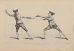 ANGELO (Angelo Tremamondo, dit). L'École des armes, avec l'explication générale des principales attitudes et positions concernant l'escrime. À Londres, chez R. & J. Dodsley, 1763. In-folio oblong, [4] f. (titre, dédicace, liste des...