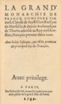 [Livre du XVIe siècle]. SEYSSEL (Claude de). La grand' monarchie de France [Suivie de] La loy salicque, première loy des François À Paris, par Galliot du Pré, [1541]. In-8, [10 (sur 12)]-162 f., fig., veau blond, dos à 4 nerfs, pièce de titre...