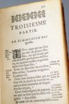rédigées en un bel ordre À Paris, chez Lucas Bruneau, 1606. In-8 [6] f. (titre en rouge et noir, épître), 367 p., [18] f. (table, errata), velin de l'époque, dos lisse, titre à l'encre (coiffe de queue arrachée, une charnière int. fendue, mouillure claires, fines piq. de ver en marge de qq. pages). Édition originale, assez rare et d'une belle impression, de ce curieux traité. Les feuillets liminaires sont pour l'épître à François de Lorraine. Gentilhomme d'origine champenoise, installé en Lorraine en 1598, Florentin Le Thierriat (ou Le Thierrat) est l'auteur de quelques volumes à caractère juridique et polémique. Les trois parties de cet ouvrage érudit sont précédées de préfaces datées de Mirecourt 1602 et Paris 1605 adressées à divers princes lorrains. L'auteur évoque la noblesse sous l'angle juridique et moral, exhortant les nobles de race à tenir leur rang et à ne pas s'avilir dans la paresse ou le mercantilisme. Ce thème est précisément à l'origine de la querelle de Thierriat, en 1607, avec les officiers de Charles III au baillage des Vosges qui aboutira, dans des conditions encore mal établies, à sa condamnation à mort par pendaison en février 1608. (D'après : Alain Cullière, « Le procès de Florentin Le Thierrat (1608) », in Les Cahiers Lorrains, 1984, n° 4, pp. 277 à 289). Provenance : Regnault de Beaucaron (ex-libris armorié gravé XVIIIe s.). Notices de catalogues anciens collées au contreplat et sur la première garde. (Saffroy I, 6626).