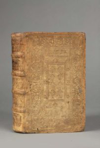 342 p., [1] f., pl., reliure époque peau de truie sur ais de bois, dis à 4 nerfs, traces de titre ms. ancien, plats ornés à froid d'un jeu de roulettes, fleurons et filets, avec au plat sup. les initiales « I. D. » et la date de 1561 (coins un peu écrasés, discrètes piq. de vers aux plats ; rares rousseurs). Édition lyonnaise de cet ouvrage du jurisconsulte V. Van Aytta (1507-1577), premier bibliothécaire de la Bibliothèque royale fondée en 1559 à Bruxelles par Philippe II. Ces commentaires ont paru pour la première fois à Bâle en 1534, rédigés d'après les cours de droit romain qu'il avait donné à l'Université de Padoue. L'édition est illustrée d'une planche dépliante « Arbor affinitatis » en fin de volume. Provenance : 2 cachets anciens au titre, dont un couronné ; étiq. ex-libris moderne H. Chevassu. (USTC 152604).