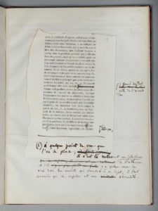 annotations autographes, pour son Étude critique des symphonies de Beethoven. Le passage présenté est consacré à la Symphonie Héroïque (chapitre III de l'étude), qui fut publiée dans À travers Champs, Études musicales, adorations, boutades et critiques par Hector Berlioz, chez Michel Levy Frères, Paris, 1862. Parmi ces corrections nous pouvons citer à la page 2, cet ajout « Seulement on peut se dire : pourquoi ce désespoir ? pourquoi cette rage ? on n'en découvre pas le motif. » ou cet ajout plus technique page 3, le texte débute par : On conçoit quel étrange effet cette mélodie « formée de trois notes, de l'accord de » tonique doit produire contre les deux notes dissonantes de l'accord ().