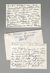 l'autre. Le peintre se dit « ému par les souvenirs que vous évoquez du cher Jules Flandrin, très belle et pure figure d'artiste que j'admirais et aimais et qui à mes débuts m'a marqué une très bienveillante sympathie pour mon oeuvre ». Au recto des carte sont reproduites une oeuvre de Renoir et une de Claude Monet. Provenance : Fonds d'archives du Docteur Joseph Flandrin, par descendance. Docteur Joseph Flandrin (1867-1942), médecin accoucheur en chef de l'hôpital de Grenoble, et frère du peintre Jules Flandrin, est un collectionneur et bibliophile forcené. Il est un grand promoteur de l'art français de son temps.