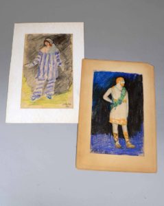 l'année 1914 que le peintre Kees Van Dongen organisa dans son appartement un bal costumé mémorable auquel prirent part Paul Poiret, Matisse, Albert Marquet et le Tout Paris en vogue. Le premier portrait en pied représente Jacqueline Marval, peintre et compagne de Jules Flandrin. Le second nous montre le grand couturier Paul Poiret. Provenance : Fonds d'archives du Docteur Joseph Flandrin, par descendance. Docteur Joseph Flandrin (1867-1942), médecin accoucheur en chef de l'hôpital de Grenoble, et frère du peintre Jules Flandrin, est un collectionneur et bibliophile forcené. Il est un grand promoteur de l'art français de son temps.