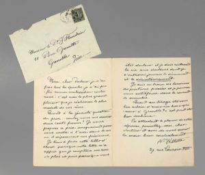 du Dr. Flandrin qui avait dû le solliciter pour la réalisation d'une lithographie : « [] c'est avec le plus grand plaisir que je réaliserai le plus modeste de vos rêves ». Willette propose un prix de 200 francs, et ajoute : « Je tiens à faire cette litho d'abord parce que votre lettre m'a appris que je comptais un ami de plus et puis parce que vous êtes docteur et je dois réellement ma vie aux docteurs dont je n'oublierai jamais le dévouement [] ». Il promet l'oeuvre pour « courant novembre », et termine en s'interrogeant sur la compétence de l'imprimeur dont le Dr. Flandrin pourra disposer à Grenoble. Provenance : Fonds d'archives du Docteur Joseph Flandrin, par descendance. Docteur Joseph Flandrin (1867-1942), médecin accoucheur en chef de l'hôpital de Grenoble, et frère du peintre Jules Flandrin, est un collectionneur et bibliophile forcené. Il est un grand promoteur de l'art français de son temps.