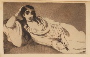 émoussés, frottements). Édition originale de la première biographie d'Édouard Manet, publiée seulement neuf mois après sa mort, par son ami, Edmond Bazire. Elle est illustrée de 2 eaux-fortes originales de Manet ("L'Odalisque couchée" et "La Convalescente"), 1 fac-similé d'une lettre de Manet à Madame Guérard, 3 eaux-fortes de H. Guérard et 6 héliogravures d'après des oeuvres de Manet, de nombreuses reproductions dans le texte. Ex-dono manuscrit d'une anonyme « À mon cher Marcel, pour sa fête. 8 octobre 1887, Marseille ».