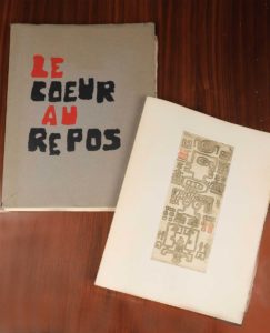 SOISSON. BERNE (Jacques). Le coeur au repos. Paris, Michel Bon, 1980. In-folio, en feuilles, chemise imprimée rempliée (chem. insolée, déchirure). 16 gravures de Jacques Soisson, dont 7 planches. Tirage limité à 84 exemplaires : un des 73 sur...