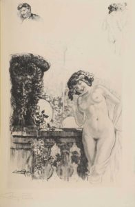 plats, double filet doré aux coupes, bordure intérieure de maroquin orné, doublure et garde de satin à motif floral, seconde garde de papier marbré, tranches dorées sur témoins, couv. et dos conservés, étui assorti [Joly fils]. 40 eaux-fortes originales en noir d'Alméry Lobel-Riche. Tirage limité à 300 exemplaires : un des 12 sur japon impérial (n°16, 2e papier), contenant trois états des illustrations.