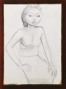 grecques argentés, les plats en toile crème, le plat sup. avec un large décor d'un personnage inca doré, chemise rempliée et étui (dos des chemises passés). Nombreuses illustrations in- et hors-texte en noir et en couleurs. Il est joint dans une chemise identique et sous le même étui : dessin original signé en bas à gauche de l'auteur-artiste, au crayon noir, représentant une jeune femme assise au buste nu, avec annotations de couleurs pour la mise en couleurs « yellow and red » et « brown (?) », 24,5 x 17,5 cm (à vue).