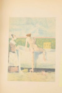 de l'ouvrage, contreplats bordés de maroquin orné d'une frise romantique dorée, gardes de moire, tranches dorées, couv. conservées [Carayon] (petites usures aux coiffes, rousseurs sur les feuillets sur Chine). Illustrations en couleurs d'Alexandre Lunois. Tirage limité à 600 exemplaires : un des 100 chiffrés en romain (I à C), et parmi ceux-ci une des 20 sur Japon (n° XIX), contenant une suite sur Chine en deux états, certains avec remarques. Reliés in fine : Suite des 24 illustrations barrées sur chine (rousseurs) ; Prospectus (3 f.).