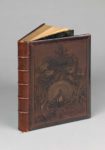 LUNOIS. GAUTIER (Théophile). Fortunio. Paris, Libr. des Bibliophiles, L. Conquet, 1898. In-4, maroquin havane, dos à 5 nerfs, le plat supérieur orné d'un large décor ciselé et gaufré, d'un paon sur fond de paysage luxuriant surmonté du titre...