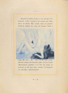 ICART. LOUYS (Pierre). Léda ou la louange des bienheureuses ténèbres. Paris, [Louis Icart], 1940. In-4, [2] f., 23 p., [2] f., chemise étui éditeur (dos de la chemise décollé). 16 pointes-sèches de Louis Icart. Tirage limité à 147...