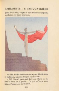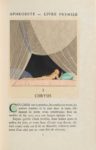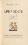 MARTY. LOUYS (Pierre). Aphrodite. Paris, Creuzevault, [1936]. Fort in-8, box marron, plats ornés d'un double filet noir d'encadrement contenant un filet ondulant entouré de points bleus et blancs, dos orné en son milieu d'une bande rose pâle au...