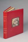 [Curiosa]. SAUVAGE. LOUYS (Pierre). Les chansons de Bilitis, traduites du grec. Paris, Sylvain Sauvage, 1927. In-4, veau framboise, dos à 4 nerfs, auteur et titre argenté, plat supérieur ornée d'une plaque en bronze argenté à décor en...
