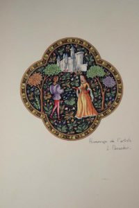 BOUCHER, BRONNER. MARIE DE FRANCE. Le conte de Lanval. Nice, Sefer, 1966-1968. In-4, en feuilles, double couverture d'éléments végétaux, chemise et étui velours bleu éditeur. Le premier livre est orné d'un riche encadrement, miniatures et...